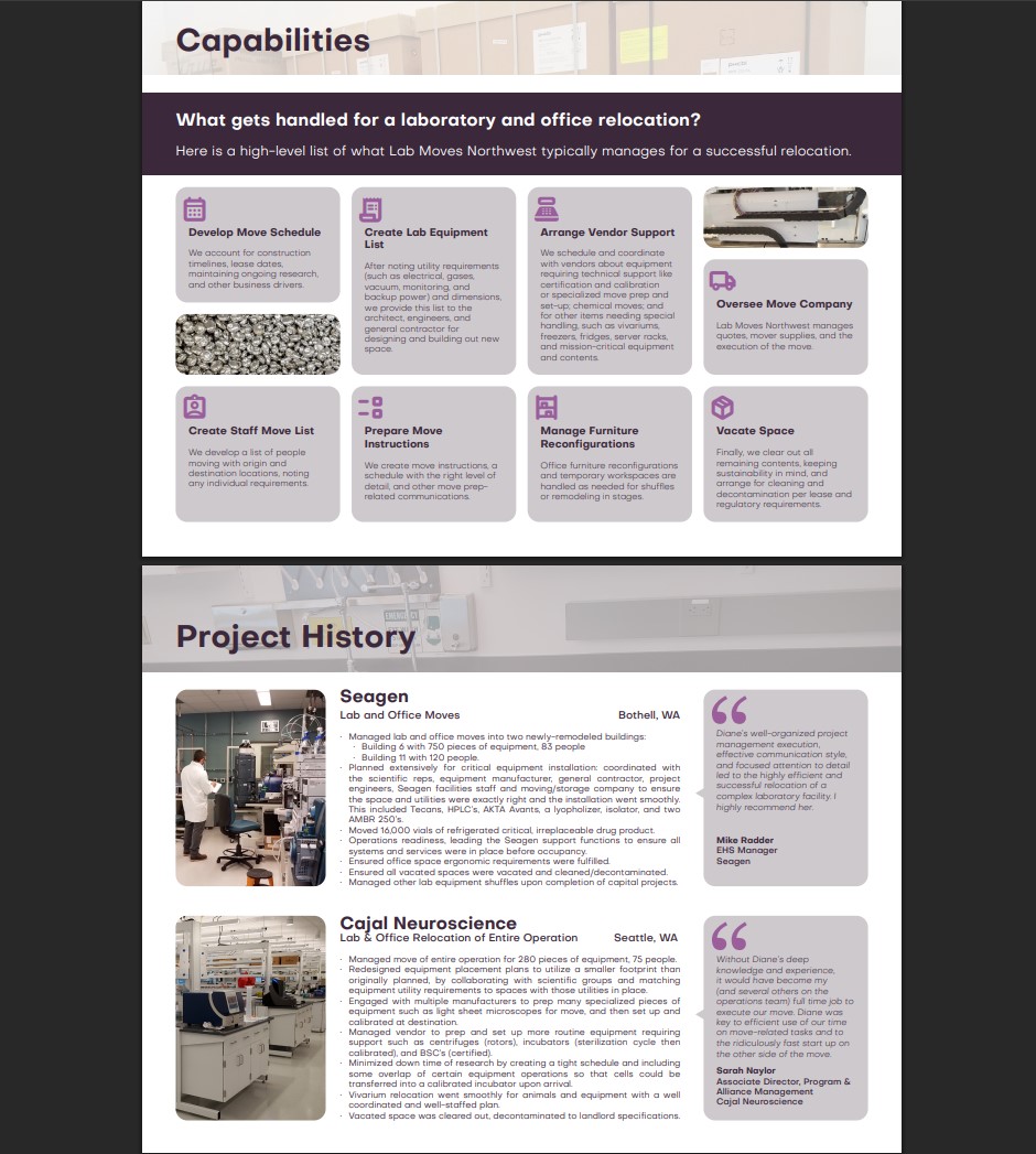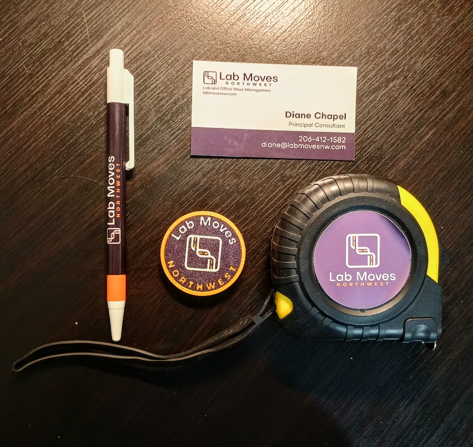 A commission of logo design, web design, and merchandise applications for a local biotech laboratory and office equipment management service.