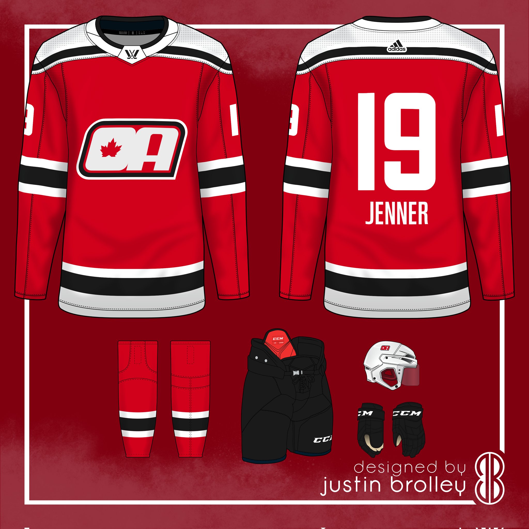 This Alerts jersey is a modern update based on the original 1910s design. The primary logo is a goal light with the Parliament tower inside of it. The secondary logo is based on the Ottawa Nationals, much in the vein of this concept by Justin Brolley.