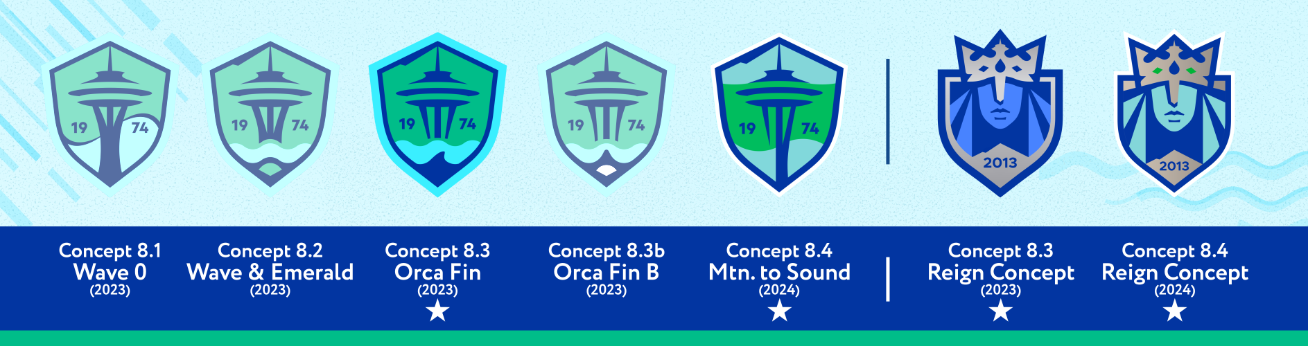 The Sounders logo gets a new Space Needle, done from scratch, inspired by 1983 logo. The 4 NASL-style waves represent our 4 pre-MLS titles. The crest is contained in a hexagonal emerald shape.