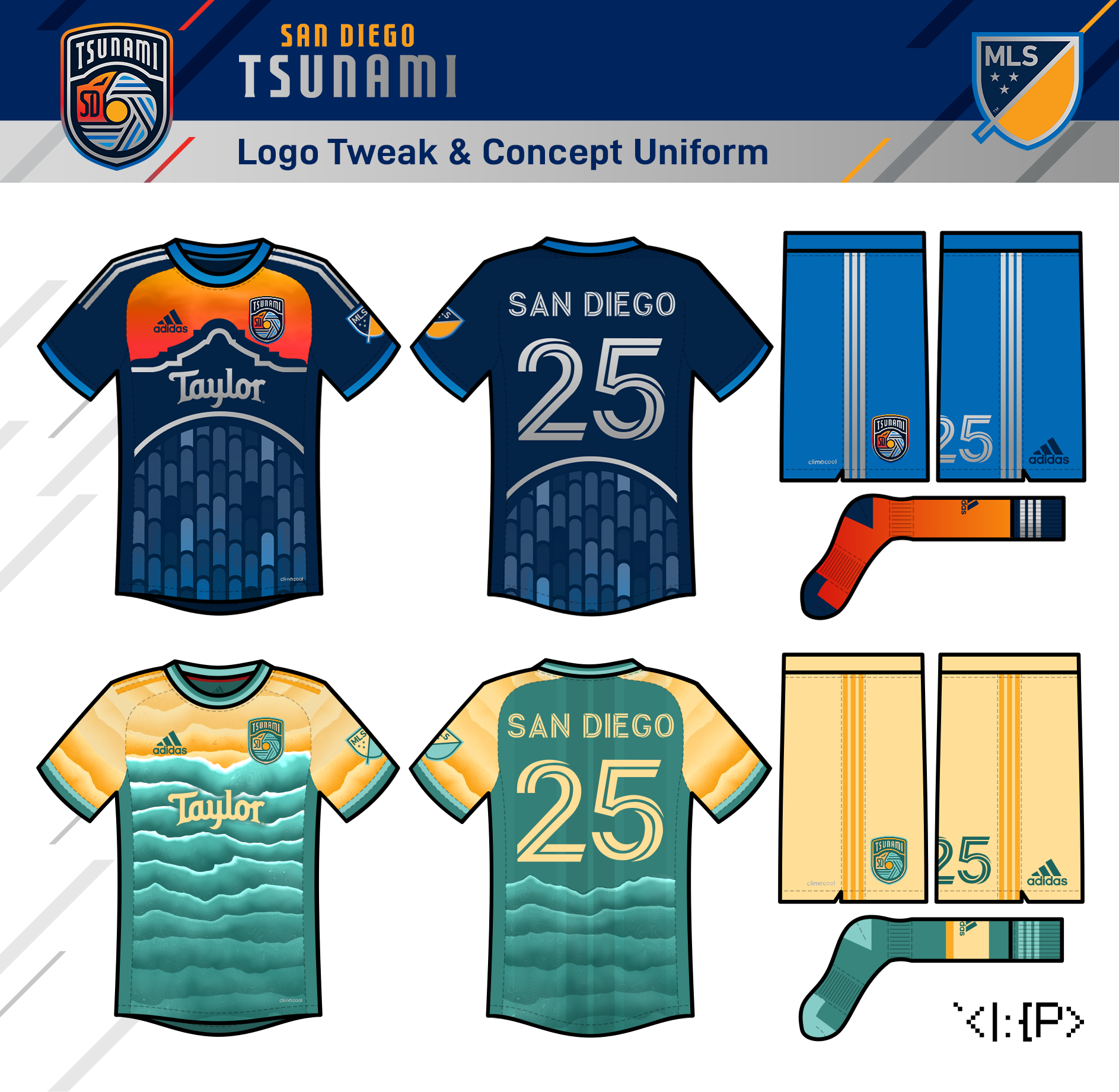 The away is admittedly similar to my Nina Simone/music-inspired Carolina Courage concept from my NWSL series, but this one is a seismograph theme that uses sound waves from of Quakes fans chanting as the seismic activity. (Aug 2021)